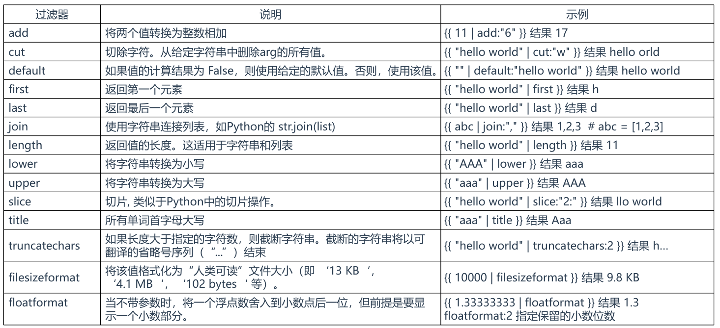 参考资料:https://docs.djangoproject.com/zh-hans/3.1/ref/templates/builtins/