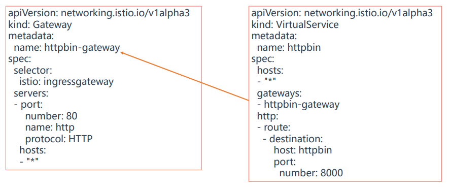 ServiceEntry(服务入口):将网格外部服务添加到网格内, 像网格内其他服务一样管理。