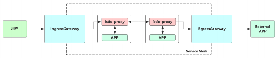 Gateway(网关):为网格内服务对外访问入口,管理进出网格的流量,根据流入流出方向分为: