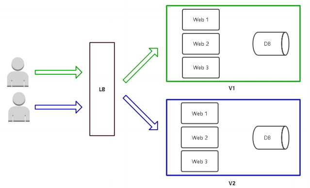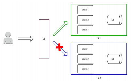 项目逻辑上分为AB组,在项目升级时,首先把A组从负载均衡 中摘除,进行新版本的部署。B组仍然继续提供服务。A组升级 完成上线,B组从负载均衡中摘除。