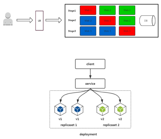 每次只升级一个或多个服务,升级完成后加入生产环境, 不断执行这个过程,直到集群中的全部旧版升级新版本。 Kubernetes的默认发布策略。