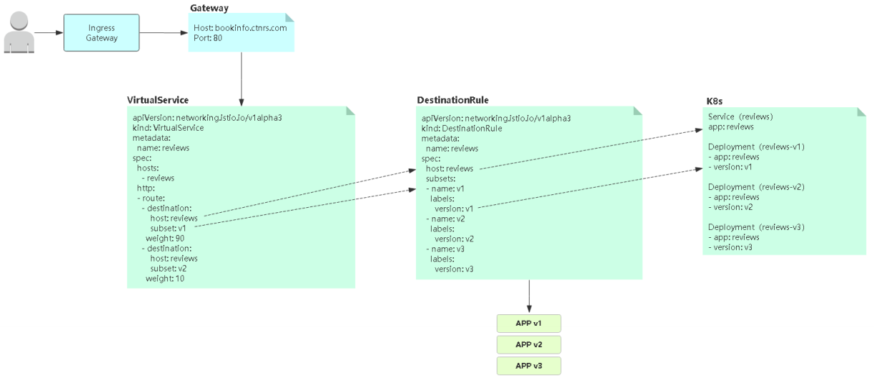 kubectl apply -f networking/virtual-service-reviews-jason-v2-v3.yaml -n bookinfo灰度发布:工作流程
