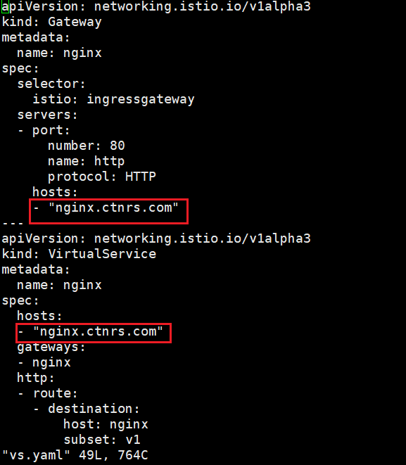 }2.在Gateway和VirtualService添加接收流量入口的域名