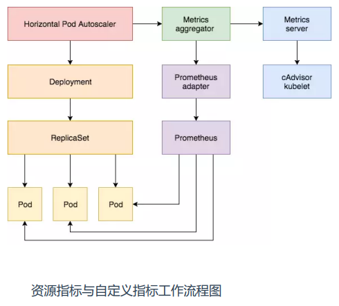 对于自定义指标(例如QPS),将使用custom.metrics.k8s.io API,由相关适配器(Adapter)服务提供。