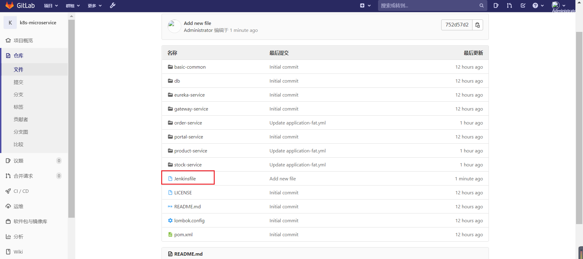 在Gitlab创建一个项目,然后提交微服务项目代码。