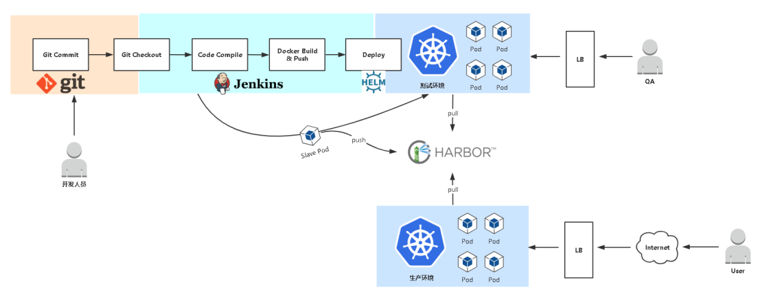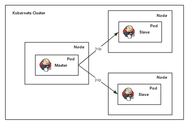 当触发Jenkins任务时,Jenkins会调用Kubernetes API 创建Slave Pod,Pod启动后会连接Jenkins,接受任务 并处理。