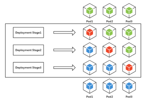 滚动升级:K8s对Pod升级的默认策略,通过使 用新版本Pod逐步更新旧版本Pod,实现零停机 发布,用户无感知。