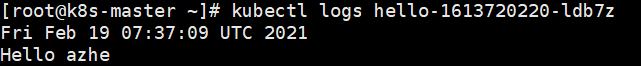 kubectl logs hello-1613720220-ldb7z