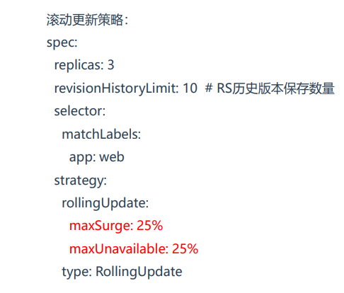 maxUnavailable:滚动更新过程中最大不可用Pod副本数,确保在更新时 最大25% Pod数量不可用,即确保75% Pod数量是可用状态。