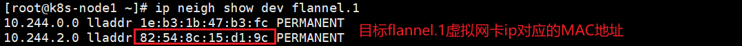 3.VXLAN封装:而这些VTEP设备之间组成一个二层网络,但是二层网络必须要知道目的MAC地址,那这个MAC地址从哪获取到呢?其实在flanneld进 程启动后,就会自动添加其他节点ARP记录,可以通过ip neigh show dev flannel.1命令查看。