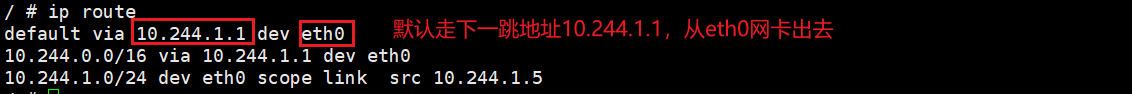1.容器路由:容器根据路由表,将数据包发送下一跳10.244.1.1,从eth0网卡出。可以使用ip route命令查看路由表
