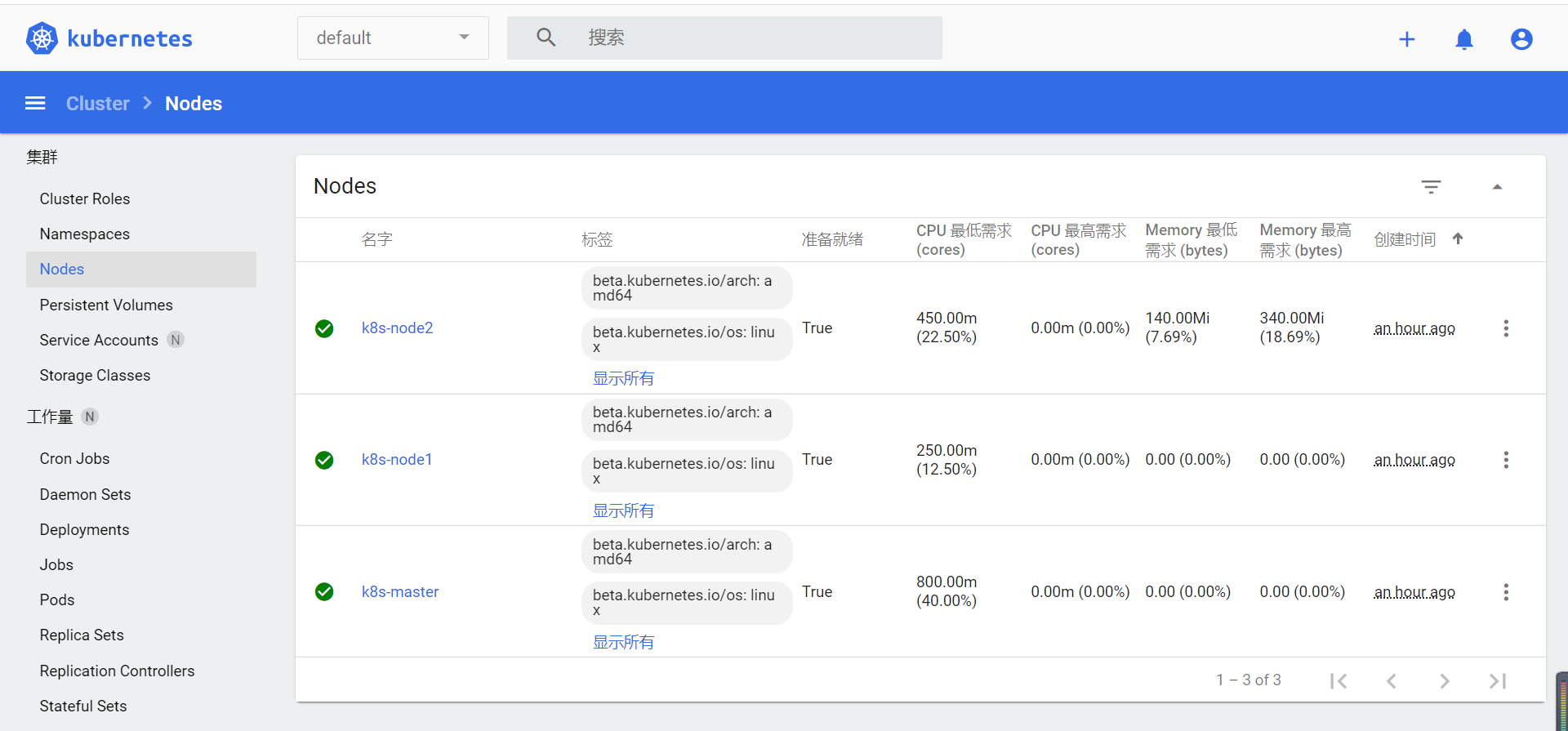 kubectl get cs查看node状态: