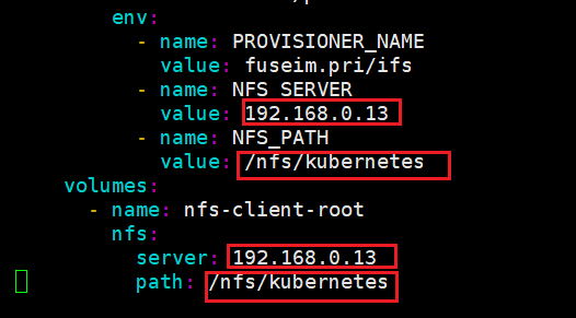 kubectl get sc # 查看存储类#修改deployment.yaml 修改里面NFS服务器地址与共享目录