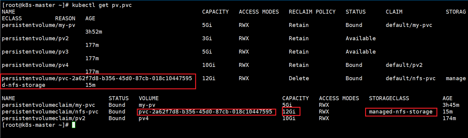 kubectl get pv,pvc