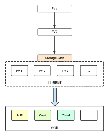 因此,K8s开始支持PV动态供给,使用StorageClass对象实现。