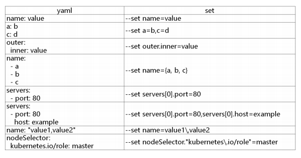 为了实现Chart复用,可动态传参修改values.yaml中的 变量值,有两种方式: