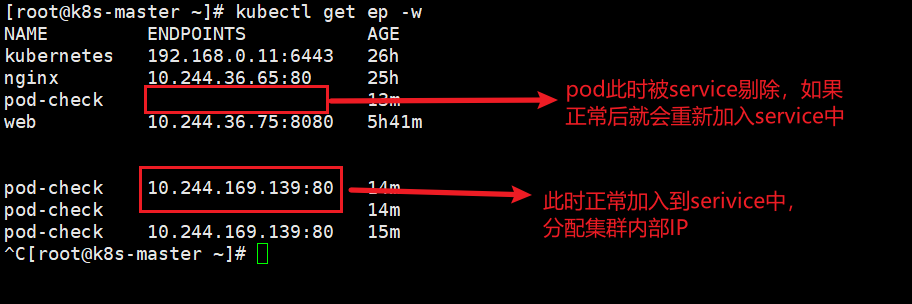 kubectl get endpoints -w #实时验证pod是否被service剔除