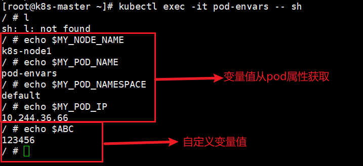 kubectl exec -it pod-envars -- sh验证: