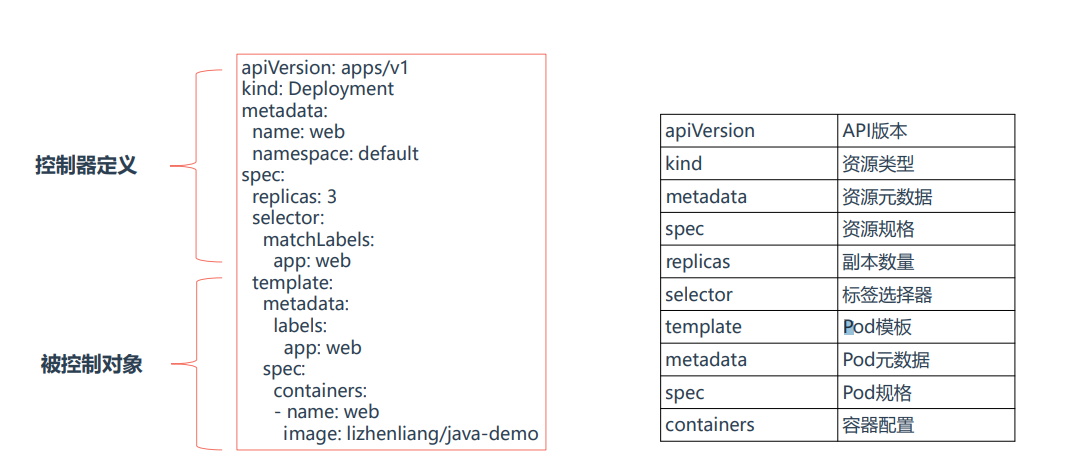 等同于:kubectl create deployment web --image=lizhenliang/java-demo -n default