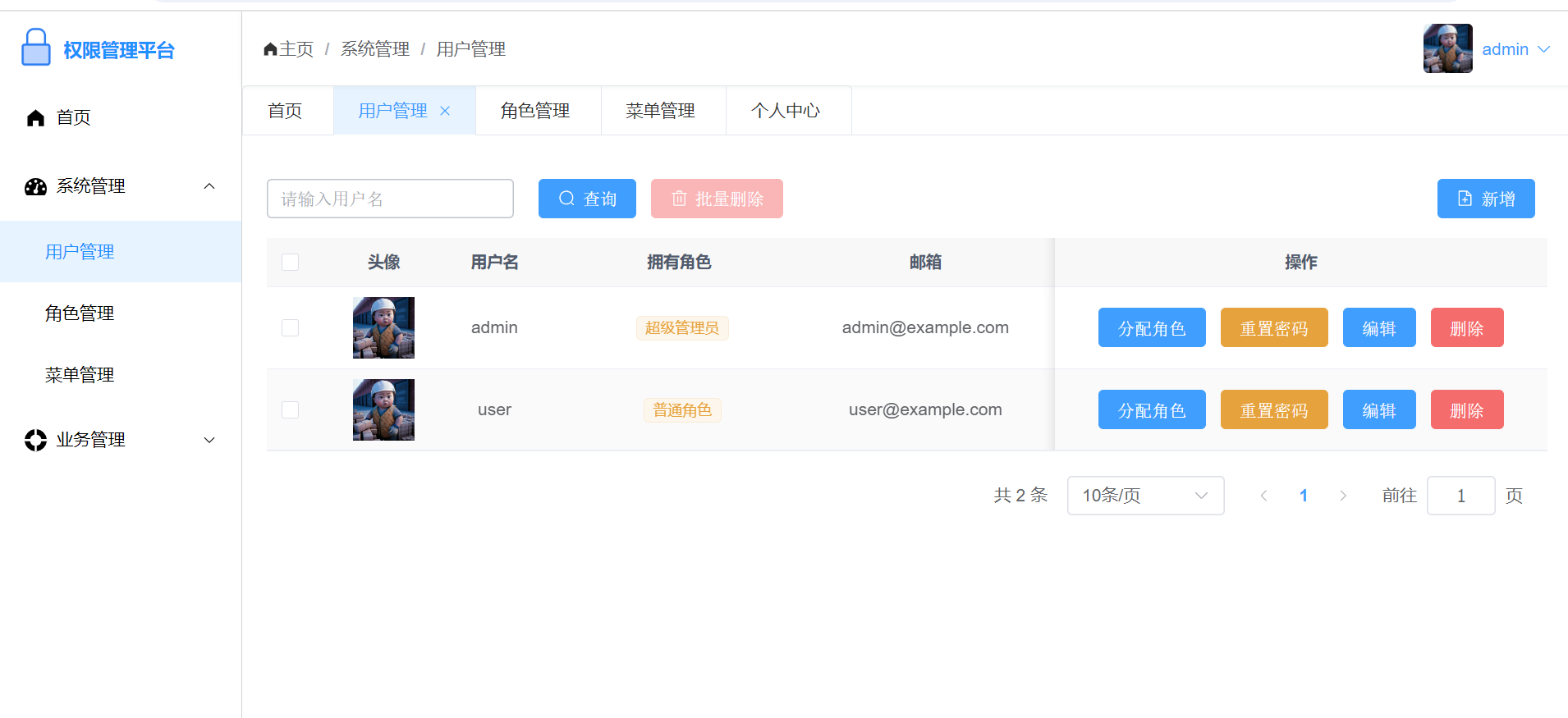 - 角色管理