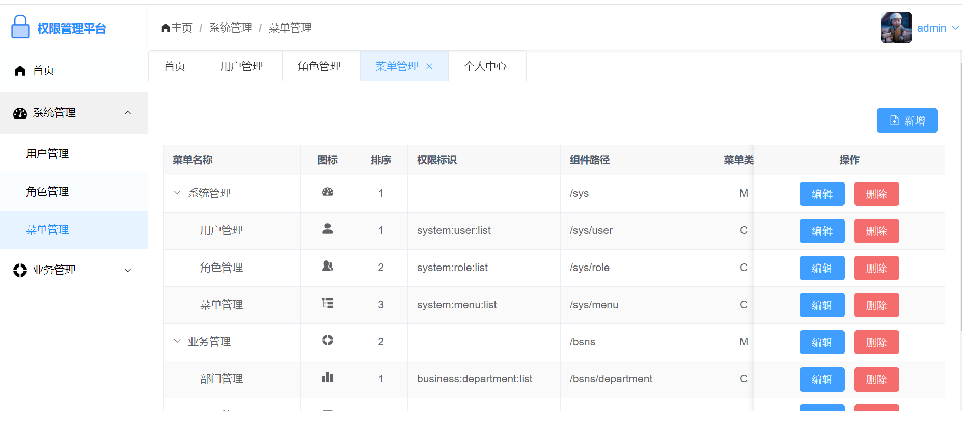 - 菜单管理