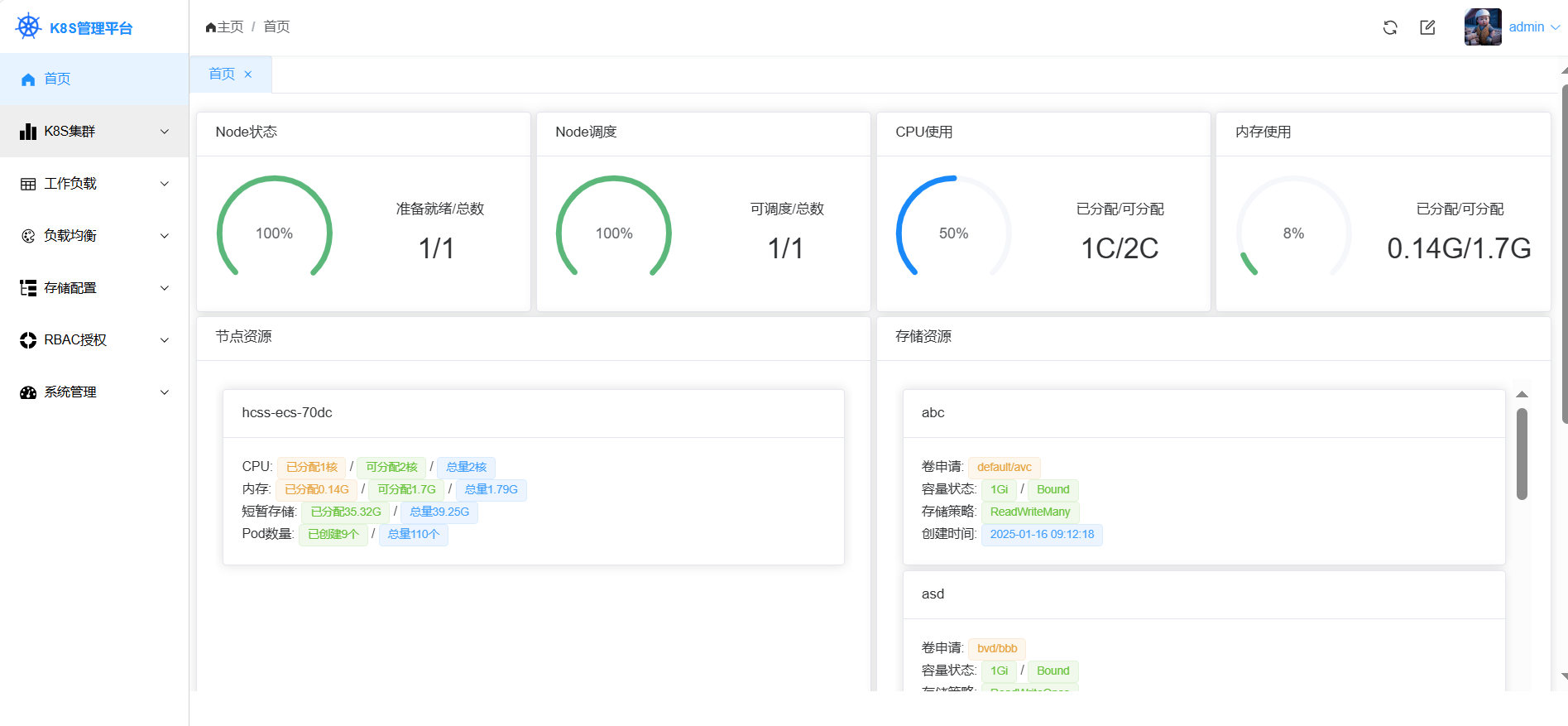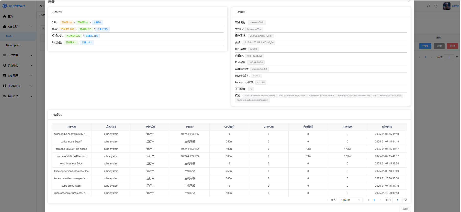- K8S集群: 支持查看集群各节点资源详细信息