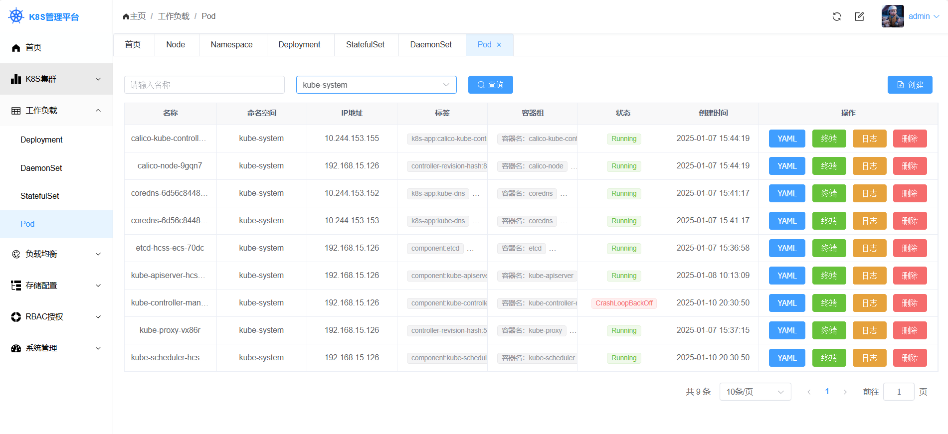 - 资源操作: 支持常用资源按命名空间查看创建删除,如: Deployment、Daemonset、Statefulset、Pod等