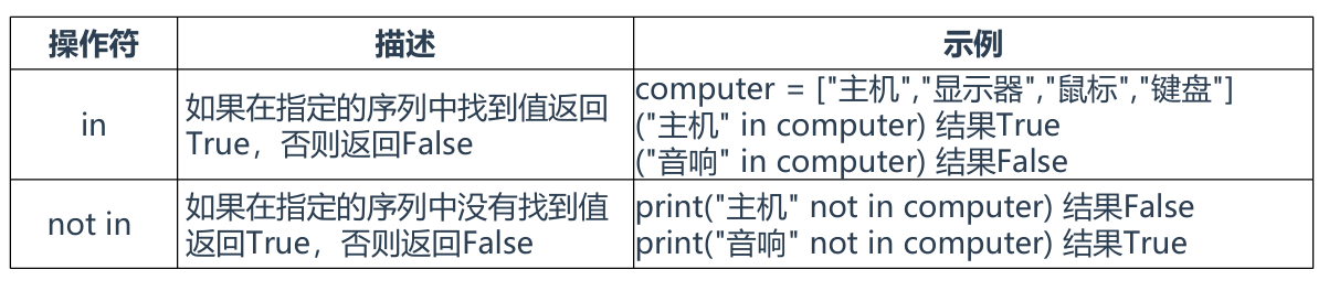 成员操作符:判断某个元素是否在数据类型里