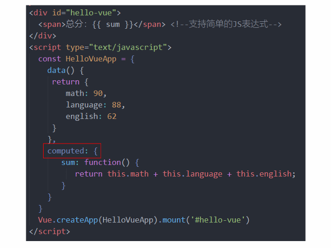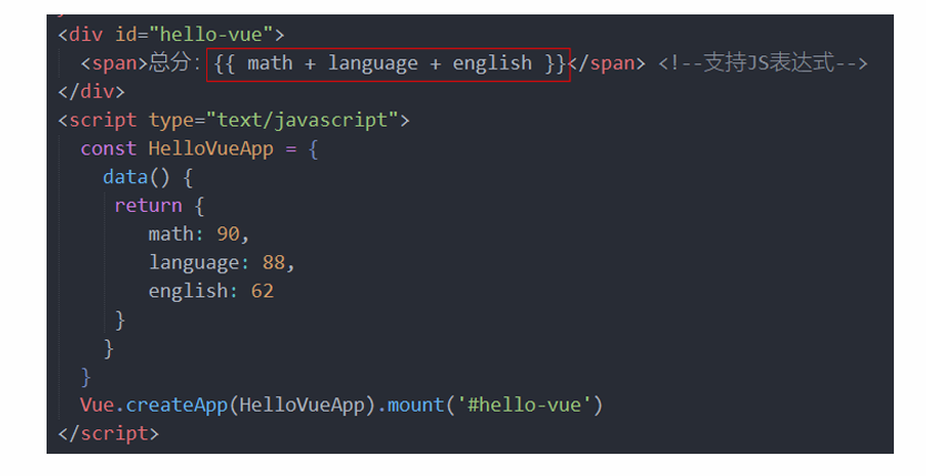 示例:需要在双花括号里添加计算再展示数据,例如统计分数