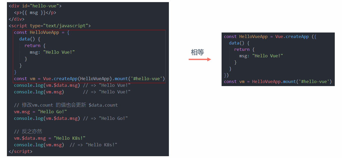 参考文档: 相等 https://v3.cn.vuejs.org/guide/data-methods.html#data-property