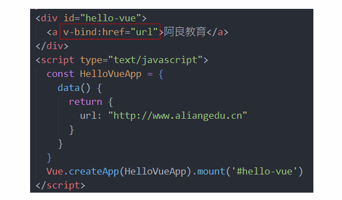 v-bind 指令将该元素的href 属性与表达式url 的值绑定。