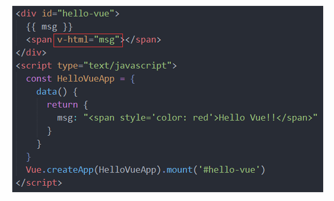 某些情况下,从服务端请求的数据本身就是一个HTML代码,如果用双大括号会将数据解 释为普通文本,而非HTML代码,为了输出真正的HTML,需要使用v-html指令: